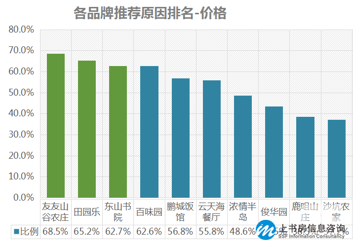 價格推薦率排名前三依次為:友友山谷農(nóng)莊、田園樂、東山書院;