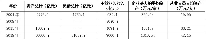 單位企業(yè)法人的平均負(fù)債和營收水平提升顯著。單位企業(yè)法人的平均負(fù)債從2004年的560.03萬元/家上升至2018年的924.26萬元/家。2004年平均每家企業(yè)法人的主營業(yè)務(wù)收入為220.03萬元/家,而2018年平均每家企業(yè)法人的營業(yè)收入為387.44萬元/家。另一方面,行業(yè)平均每個(gè)從業(yè)人員的負(fù)債從最初12.46萬元/人,上升至2018年的33.96萬元/人;同時(shí),平均每個(gè)從業(yè)人員的主營業(yè)務(wù)收入在2004年約為4.89萬元/人,而2018年的每單位從業(yè)人員的營業(yè)收入為14.23萬元/人。