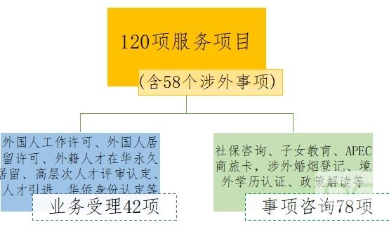 朝陽區(qū)先行設(shè)立的北京CBD國(guó)際人才一站式服務(wù)中心,是朝陽區(qū)打造的業(yè)務(wù)最全、功能最多的一站式綜合服務(wù)站點(diǎn)。截止到2021年4月,服務(wù)中心已經(jīng)辦理業(yè)務(wù)超過700件。中心整合了19家職能部門的120項(xiàng)服務(wù)項(xiàng)目,涵蓋外國(guó)人工作許可、居留許可、永久居留推薦,人才評(píng)審認(rèn)定、引進(jìn)落戶等42項(xiàng)受理事項(xiàng)和外籍人才社保、涉外婚姻登記、APEC商旅卡等78項(xiàng)咨詢事項(xiàng)。