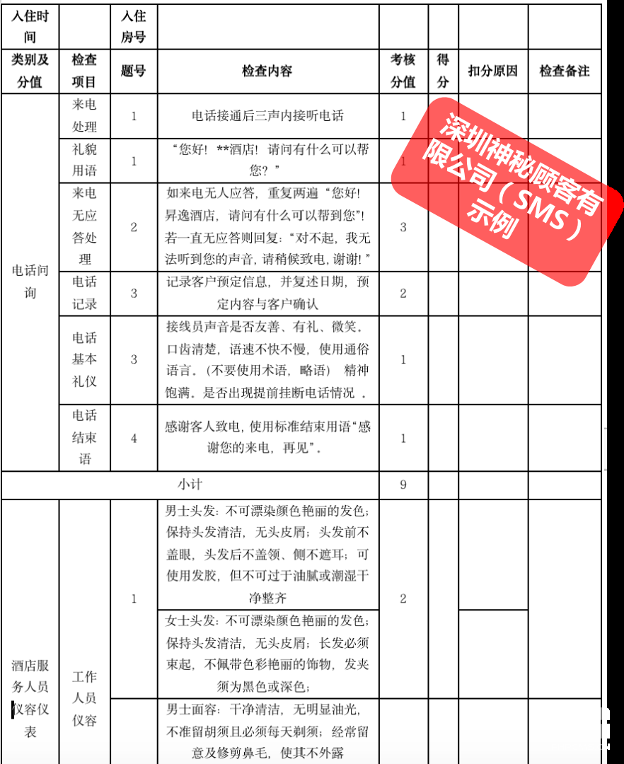 通過神秘顧客暗訪,了解其中存在的問題,并加以改進(jìn),達(dá)到提升酒店服務(wù)質(zhì)量的目標(biāo);通過感受和觀察酒店軟硬件服務(wù),并與服務(wù)標(biāo)準(zhǔn)形成對比,進(jìn)而為服務(wù)的檢驗(yàn)和改進(jìn)提供參考;同時(shí)神秘顧客的存在使得酒店服務(wù)人員在主觀意識上對服務(wù)的重視,可以保持較高的優(yōu)質(zhì)服務(wù)。