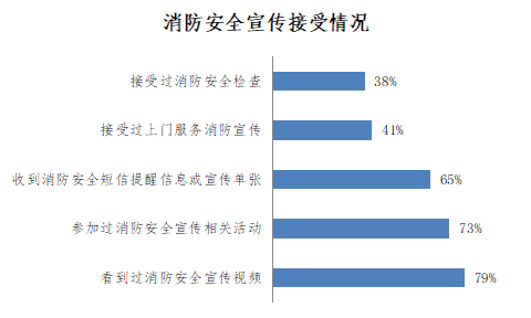 從受訪居民口中得知,深圳市利用宣傳海報或標語進行消防安全宣傳效果較為明顯,近八成居民在日常生活中能夠看到消防宣傳海報或標語,同時超過七成居民看過消防安全宣傳視頻,深圳市相關部門的消防安全宣傳工作已滲透進居民的日常生活中,得到較多居民的肯定。