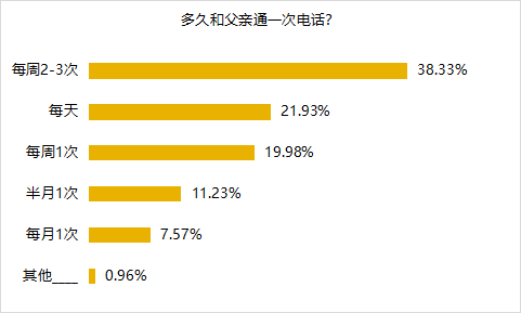 絕大部分被訪者都比較了解自己的父親,約四成的人與父親每周通話2-3次