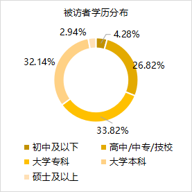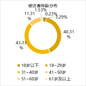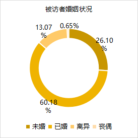 本次調(diào)查共回收2617份有效問卷,男性占比六成,年齡主要集中在18~40歲;已婚被訪者占六成,未婚占四分之一;主要以專科、本科和高中學(xué)歷為主(90%以上);主要職業(yè)為普通職員、企業(yè)管理者和政府/機(jī)關(guān)干部/公務(wù)員,詳細(xì)占比見文后。