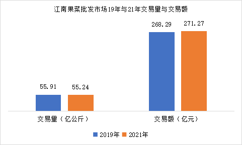 江南果菜批發(fā)市場創(chuàng)建于1994年,主要從事蔬菜和水果產(chǎn)品的批發(fā)經(jīng)營,是國內(nèi)頗具規(guī)摸的水果批發(fā)市場,重要的水果進(jìn)口集散地。江南市場對市場進(jìn)行升級了改造,建成信息中心、結(jié)算中心、檢測中心、辦公大樓、冷庫、廢棄物處理中心、銀行、酒店等較為完備配套設(shè)施。同時有完善的信息發(fā)布系統(tǒng)、臨控系統(tǒng)、財務(wù)結(jié)算等系統(tǒng)。2019年果菜總交易量達(dá)55.91億公斤,同比增長0.30%;總交易額達(dá)到268.29億元,同比增長0.76%。