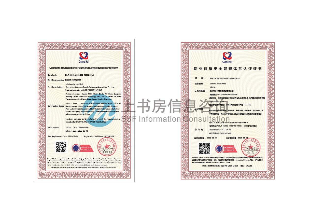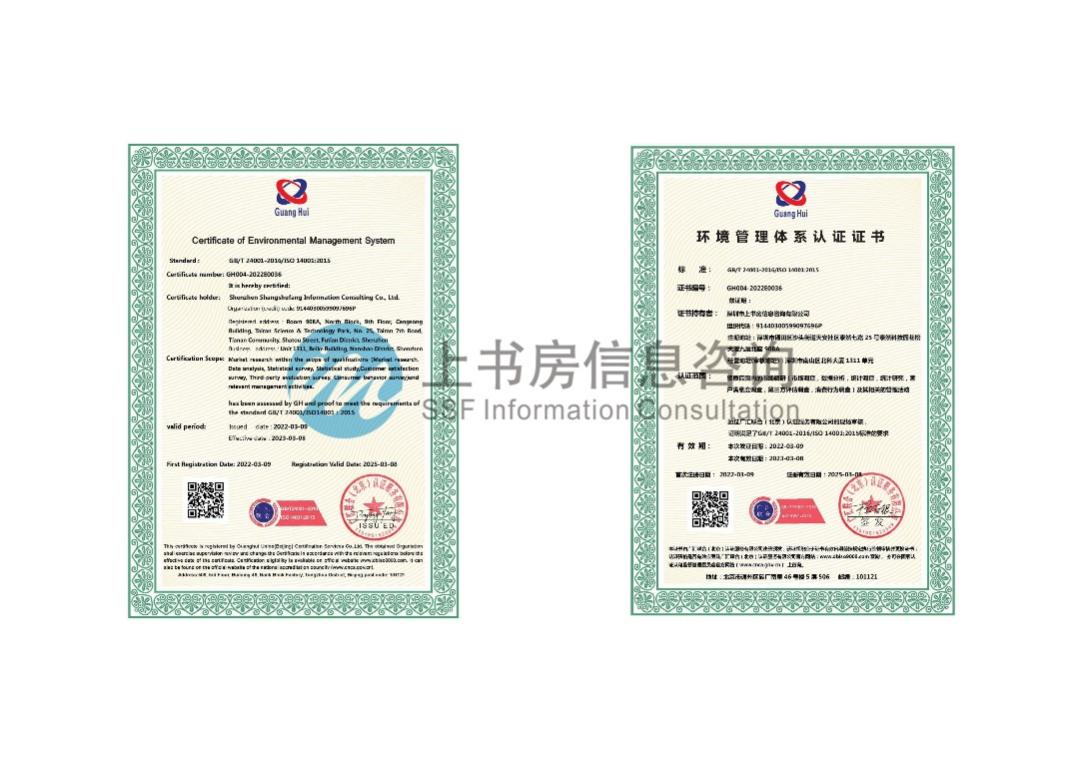 近日,深圳市上書房信息咨詢有限公司獲得了環(huán)境管理體系認(rèn)證(GB/T 24001-2016/ISO 14001:2015 )和職業(yè)健康安全管理體系(GB/T45001-2020/ISO 45001:2018 )認(rèn)證雙證書。