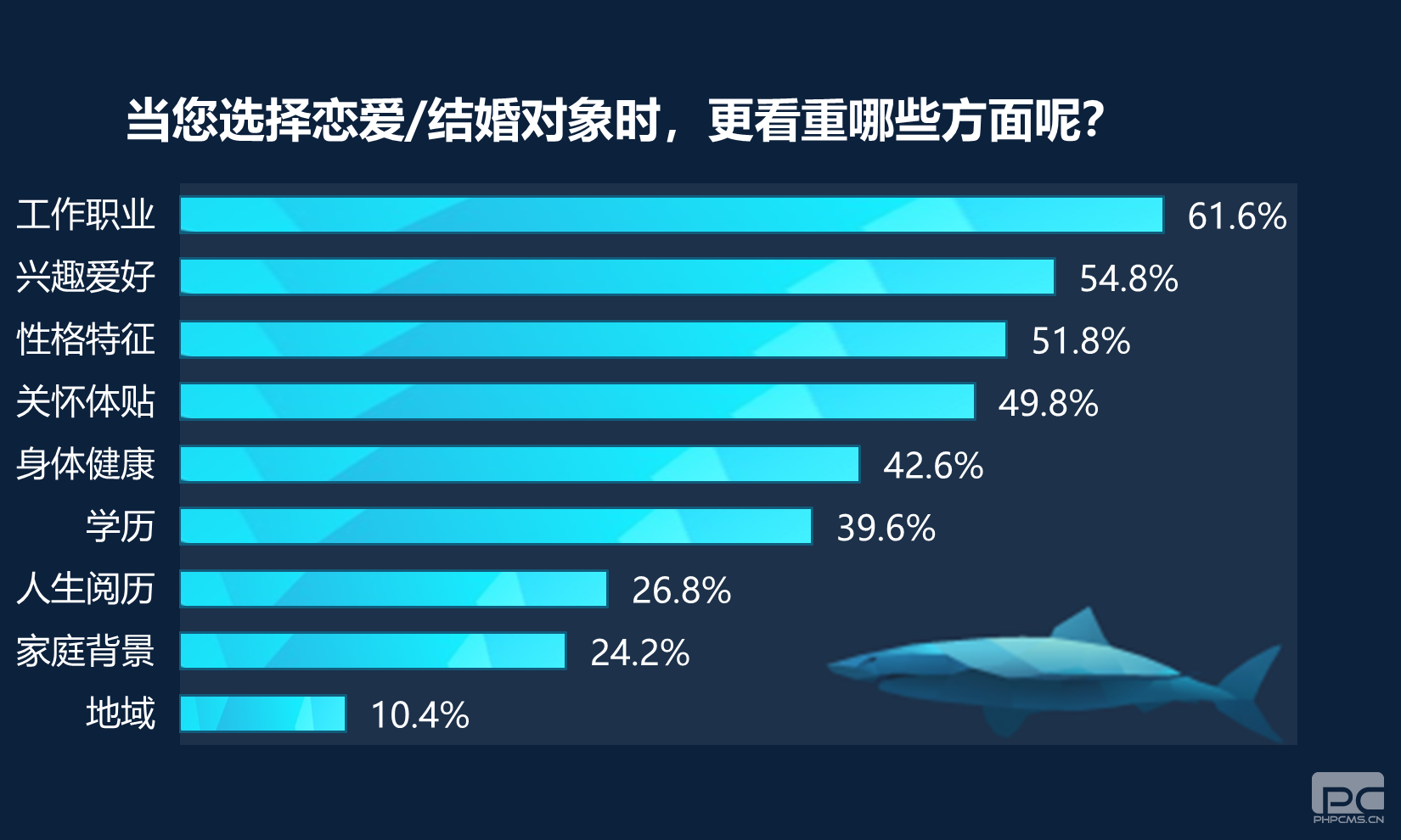 調(diào)研發(fā)現(xiàn),未婚人士更加看重“工作職業(yè)”、“興趣愛(ài)好”和“性格特征”,認(rèn)為這樣雙方之間會(huì)更有話(huà)題,當(dāng)然也發(fā)現(xiàn)很多已婚人士的伴侶有不少就是工作認(rèn)識(shí)的,畢竟在深圳不是在加班就是在加班路上,確實(shí)很難遇到工作以外的人。