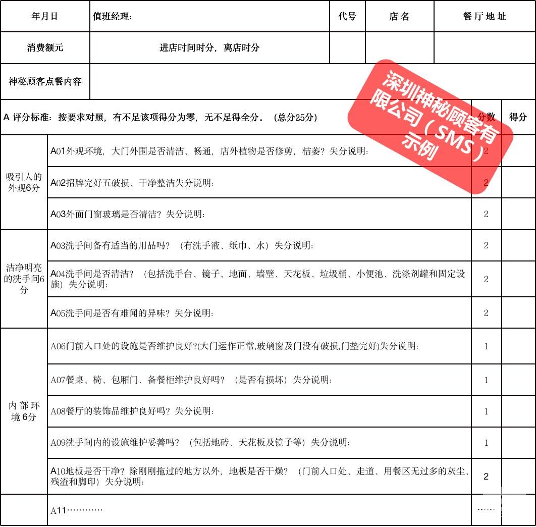 “神秘顧客檢測”最早普遍應用于餐飲服務(wù)行業(yè)。隨著餐飲行業(yè)服務(wù)水平要求的提高,也越來越多的餐飲行業(yè)會開始或者委托專業(yè)的市場調(diào)研機構(gòu)(如上書房信息咨詢、蓋洛普等)或?qū)I(yè)的神秘顧客調(diào)研公司(如深圳神秘顧客SMS)針對餐飲服務(wù)進行神秘顧客暗訪。通過神秘顧客調(diào)查可以從普通顧客的角度考核餐飲企業(yè)或其連鎖分店、合作網(wǎng)點的運作管理。調(diào)研內(nèi)容包括友善程度、快速、準確度、餐品質(zhì)量、衛(wèi)生清潔、服務(wù)滿意度等方面的問題。幫助餐飲店管理者設(shè)立對表現(xiàn)杰出員工的鼓勵和獎勵機制,對于鼓舞員工士氣和對員工的工作表現(xiàn)都是非常有好處的。“神秘顧客”檢測是餐飲企業(yè)管理中一種很好的輔助方式。