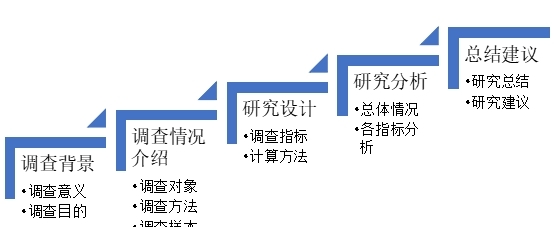 在調(diào)查報(bào)告撰寫前,我們需要建立滿意度調(diào)查指標(biāo)體系。報(bào)告撰寫圍繞建立的滿意度調(diào)查指標(biāo)進(jìn)行分析與解讀。滿意度調(diào)查指標(biāo)有一級(jí)指標(biāo)、二級(jí)指標(biāo)和各二級(jí)指標(biāo)下的細(xì)分相關(guān)指標(biāo)。各級(jí)指標(biāo)相互關(guān)聯(lián)而各有不同的關(guān)注點(diǎn),從而得出最終的客戶滿意度得分。設(shè)計(jì)滿意度調(diào)查指標(biāo)的時(shí)候需要注意其邏輯關(guān)系、條理清晰、指向明確。