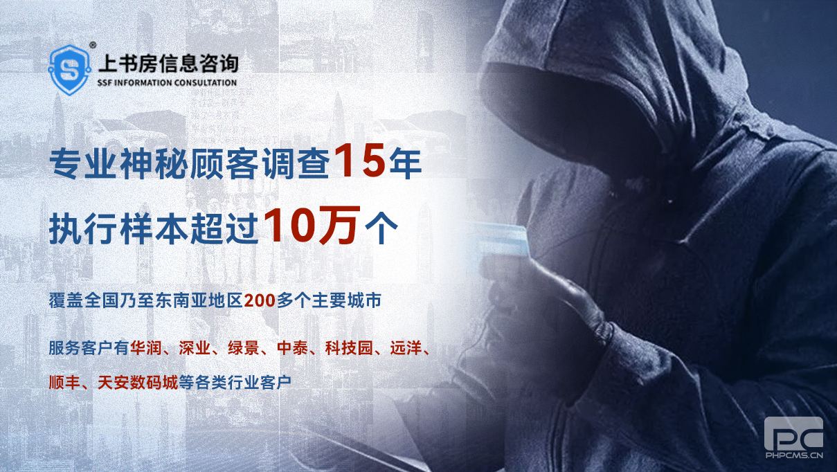 本文由上書房信息咨詢(成都市場(chǎng)調(diào)查公司)出品,歡迎轉(zhuǎn)載,請(qǐng)注明出處。第三方市場(chǎng)調(diào)查咨詢公司神秘顧客調(diào)查公司上書房信息咨詢神秘顧客調(diào)查執(zhí)行覆蓋全國(guó)80%以上鄉(xiāng)鎮(zhèn)地區(qū),多年來與國(guó)內(nèi)知名企業(yè)、連鎖企業(yè)形成長(zhǎng)期合作,服務(wù)行業(yè)包括汽車、餐飲、零售、電商、酒店、景區(qū)、窗口、銀行、服裝等等,服務(wù)完成專項(xiàng)案例50,000例,樣本1,150,000個(gè),獲取客戶的高度信任,贏得業(yè)界的一致認(rèn)可。