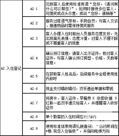 下圖是上書房信息咨詢和深圳神秘顧客市場(chǎng)調(diào)查有限公司就酒店前臺(tái)人員接待方面設(shè)計(jì)的指標(biāo),僅供參考。