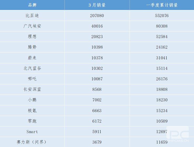 一季度新能源汽車比亞迪、廣汽埃安、理想這三家車企增長(zhǎng)明顯。